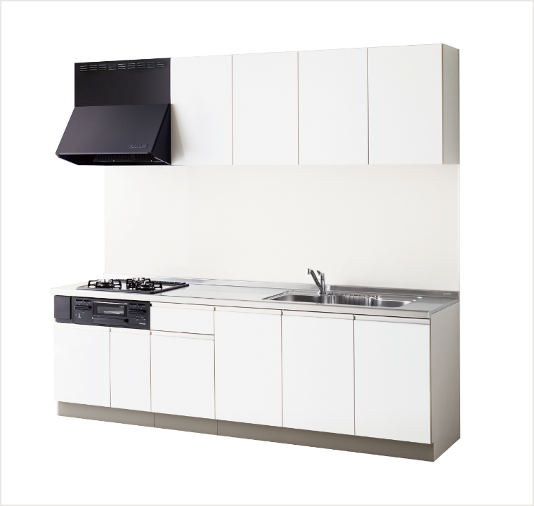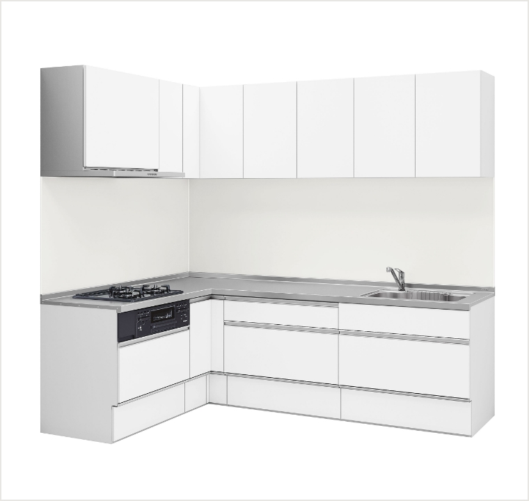 ⼩さなスペースでも、理想のキッチンをつくりましょう。お気に⼊りの⾊を選んだり、カウンターを付けたり、レイアウトを⼯夫したり。