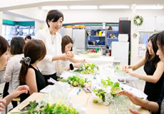 創業89年・日本で最も歴史ある花材総合商社である東京堂とDreamia club、そして創立50年・銀座「田中伶子クッキングスクール」による コラボレーションで、東京堂が展開しているアーティフィシャルフラワー「MAGIQ」を使い、ブランドアンバサダーを務める今野政代先生を講師に お迎えし全3回のスペシャルレッスンが開催されることになりました。その第1回目の様子をご紹介します。