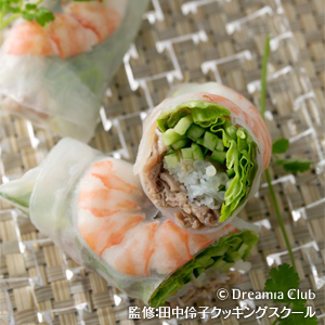 - 海老は頭と殻と背ワタを取り、塩、胡椒をして片栗粉をまぶしておく。