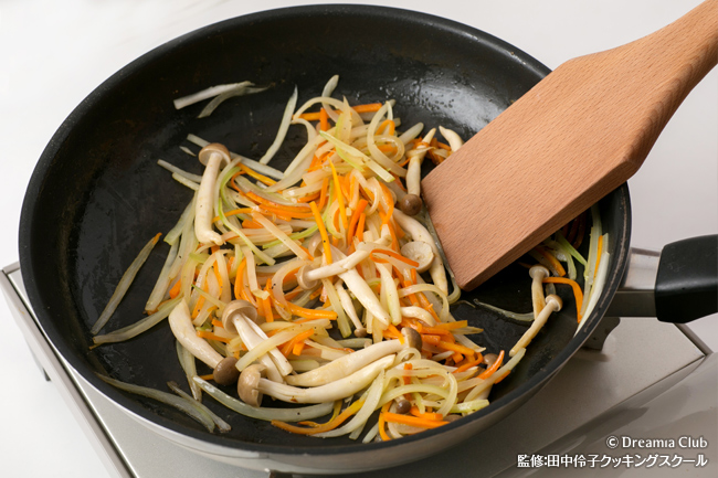 - 生鮭に塩、胡椒、タイムをまぶす。Aの野菜は5cmの長さの千切りにし、バターでソテーして軽く塩、胡椒をふって冷ましておく。