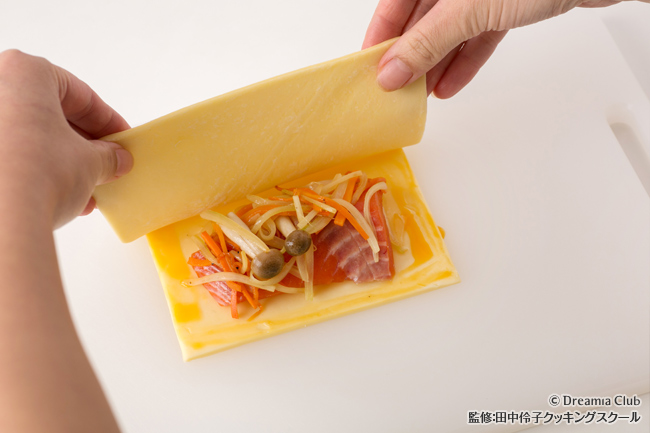 冷凍パイシートは戻し過ぎると溶けて扱いにくいので、手早く作業するよう注意してください。