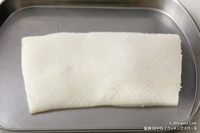 *鹿の子切り: 材料の表面に細かい格子状の切りこみを入れること。