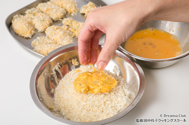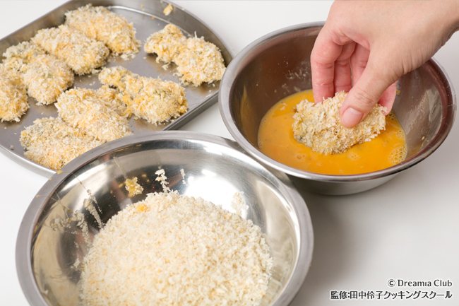 衣を二度付けすると、揚げる時に油が跳ねません。