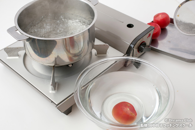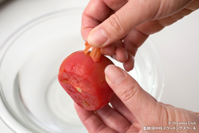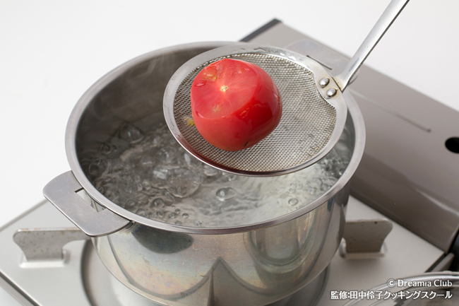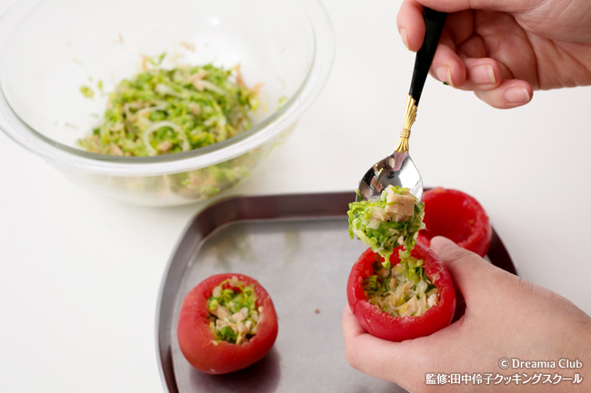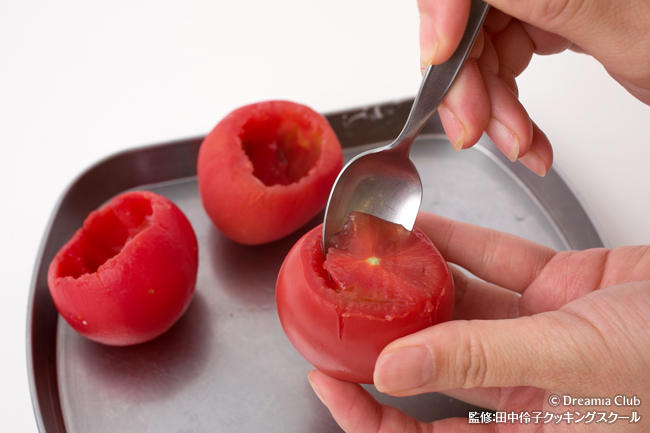 - トマトはさっと湯むきして、中身をスプーンでくり抜く。