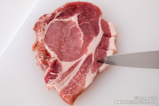 豚肉の厚みは1cmくらいまでがよいです。それ以上厚いと、揚げた時に外だけ焦げて中が生になってしまいます。
