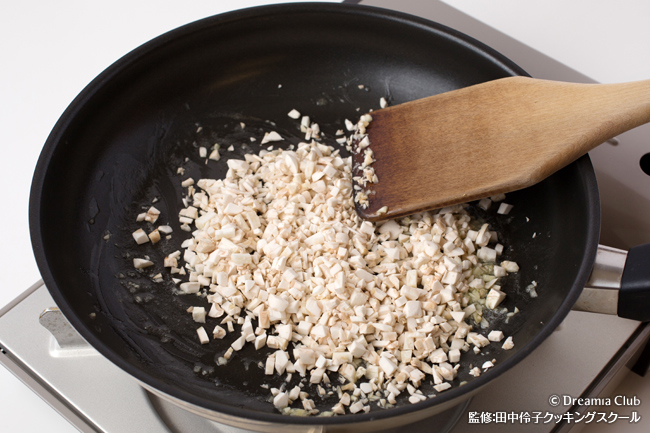 - Aをみじん切りにしてバターで炒め、塩、胡椒しておく。