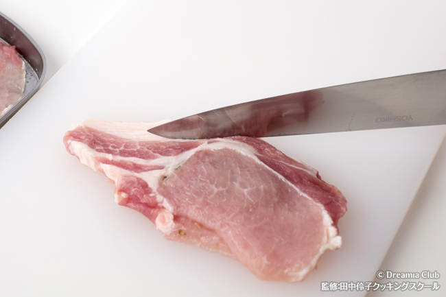 - 豚肉に塩、胡椒する。