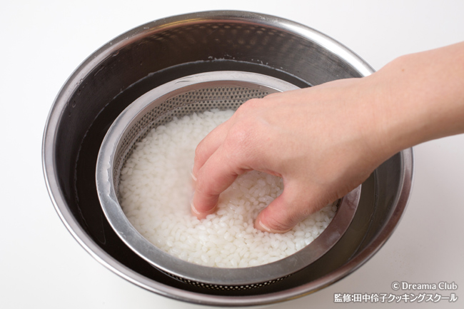 米は少しアルデンテ気味に茹でます。