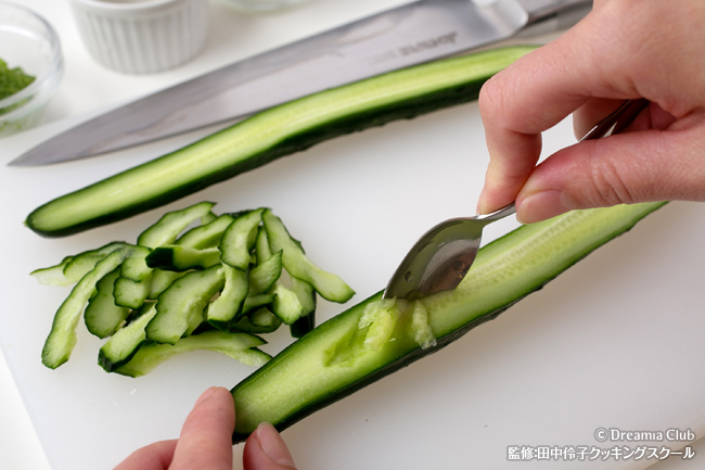 きゅうりは種を取ると、水っぽくなくなり、美味しくなります。