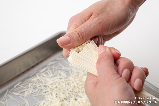 そうめんは手でちぎってください。