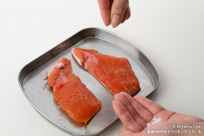 - ますに塩をふり30分おき、サッと洗って水気を切る。
