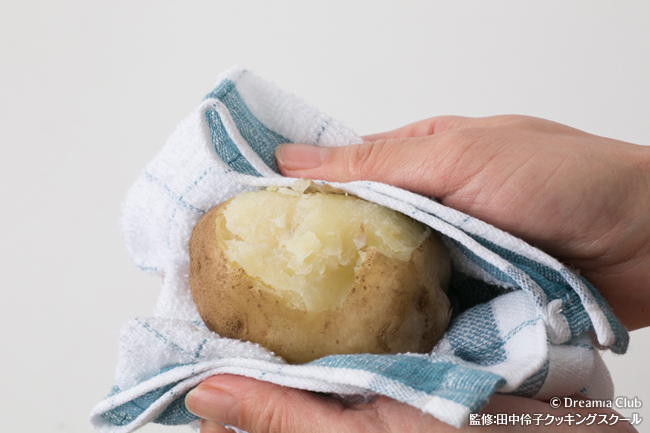 - じゃがいもは皮ごと柔らかく茹でて裏ごしする。