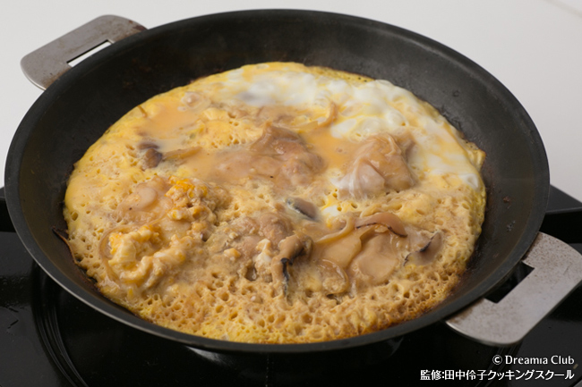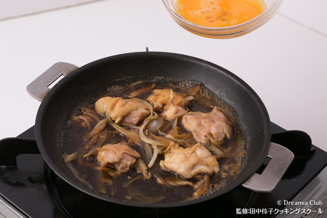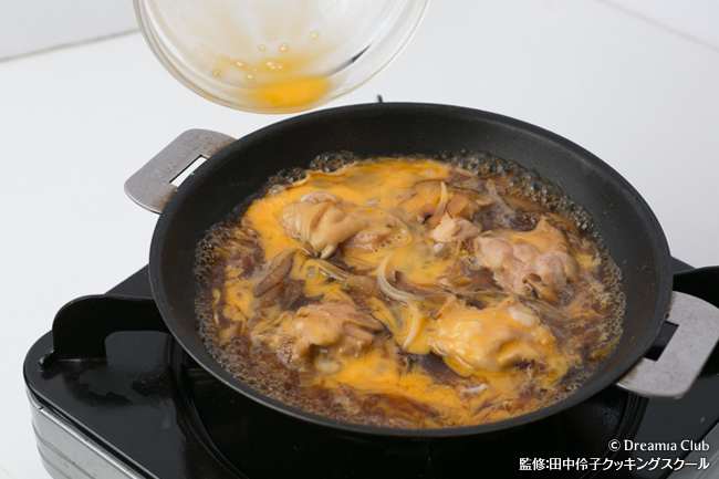 親子丼を作るときは卵は混ぜすぎないのがポイント。