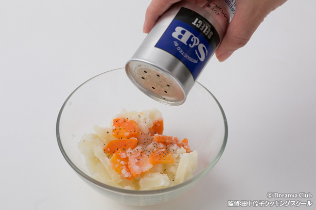 - 2が熱いうちに塩・胡椒で下味をつける。