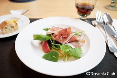 先生が目の前でメインの帆立・マッシュルームを調理している姿を見ながらサラダを頂ける様は、まるでライブキッチン!