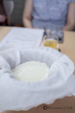 「こうやってカッテージチーズになる部分を濾していきますが、乳清どうするか問題が必ず出てくるんですね。私が今まで経験した中では、パイナップルジュースと混ぜ合わせるのが、一番良かったかなと思います。そのままだとやっぱりちょっと美味しくないですね。」