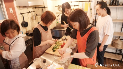 白玉団子を丸めたり、湯がいたり、冷やし中華の具材を切っていったり…それぞれが分担して皆さんで作業をすることで、より効率よく調理が進んで行き、あっという間にラストスパート。