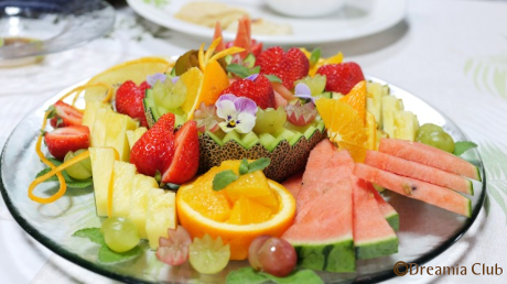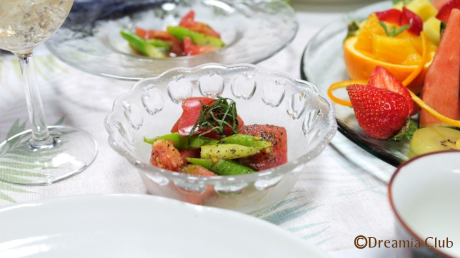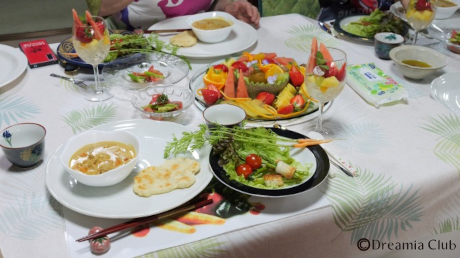 お野菜とフルーツで彩られた食卓は華やかで圧巻。
