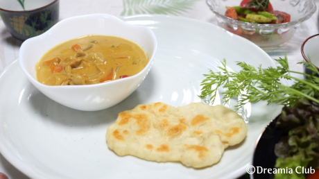 キレイにカッティングされたフルーツを盛り付けデザートも仕上がったら、最後はナン作り!