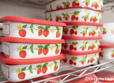 ご縁をいただいてしばらく経ってから、私がデザインしたいちご柄を商品化していただいたものが「いちごきっちんホーローシリーズ」です。今では全4種になり自社通販サイトにて販売もしています。おかげさまで長く愛される人気商品になっており、うれしい限りです。