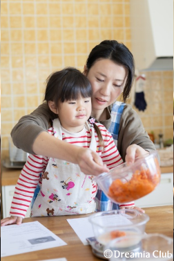ニンジンの計量もお母様がしたり、お子様がしたり。
