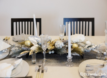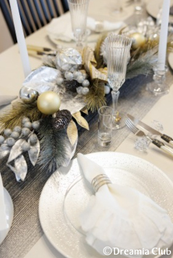 今回はクリスマスレッスンとあって、テーブルにはグレーをテーマカラーにしたシックで華やかなテーブルコーディネートが。思わず心ときめきます。