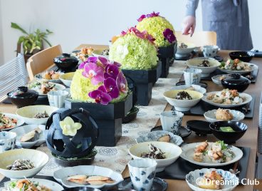 ほかのお料理も季節を取り入れた器に美しく盛り付けられます。テーブルに並べられると生徒さんから歓声があがりました。