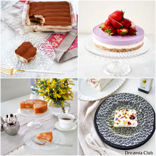 大人気のヴィ―ガンスイーツ例:ティラミス、レアチーズケーキ、タルトタタン、カッサータ