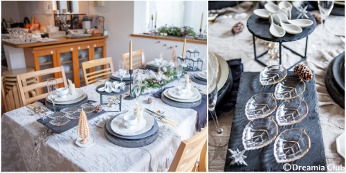 テーブルにはシルバーを基調にしたクリスマスコーディネートが飾られていました。