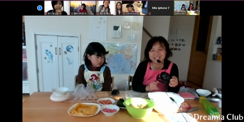 国境を超えてつながるレッスン。この日は、自己紹介からはじめ、一緒に手巻きずしを作りました。