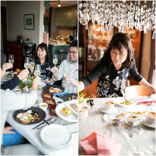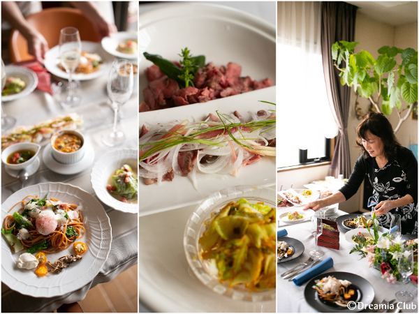 素敵なテーブルコーディネートに美味しい料理 先生も一緒に食事を楽しむなごやかな時間