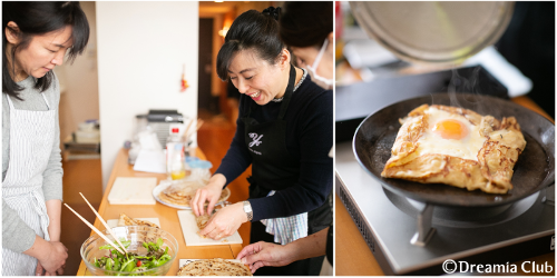 先生が3種類のクレープをデモンストレーションしたあと、生徒さん各自でクレープ生地を3枚ずつ焼いていきます。
