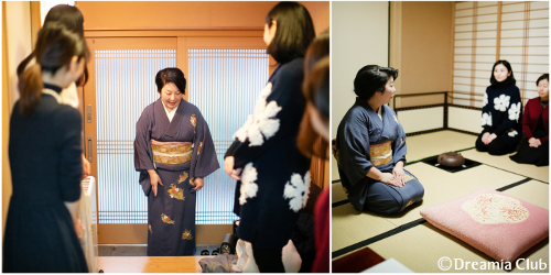 玄関で靴の脱ぎ方・揃え方、ふすまの開け閉め、座り方やお茶のいただき方までレクチャー。