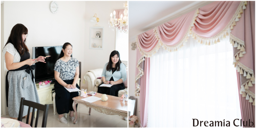 白が貴重の中にやわらかなフューシャピンクのカーテンがマッチして、ときめく素敵な空間が広がっていました。