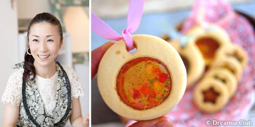 秋山さん いまSNSで大人気なんですよ!クッキーを途中まで焼いて一度取り出し、真ん中を型抜きして、そこに飴を入れて焼き上げるとステンドグラスのようになります。それを2枚作って、間にアラザンなどを挟んでアイシングで2枚をくっつけて、完成です。