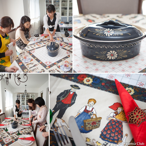 テーブルクロスは先日デパートで開催されていたフランス展で購入したものです。さきほどご紹介した、アルザス地方出身の人気画家アンジが描いた、民族衣装を着た子ども達の絵が可愛らしいですよね。