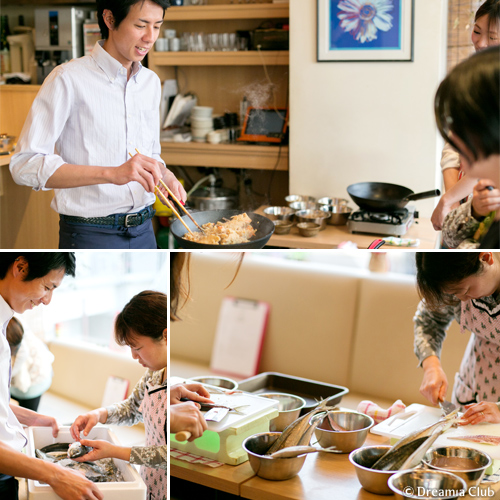 今月は、このコーナー初の男性のご登場!都内世田谷区で、日本一魚がさばける和食専門料理教室「Family」を主宰する高橋善郎さんです。 和食料理人のお父様の影響で幼少期から料理の基礎を学んだバックグランドを持ち、会社勤務を経て料理家に。 だしの取り方や、だしを使い素材の味を活かした料理と魚のさばき方が学べるレッスンは大好評で、もう今年のレッスンは全て予約がうまっているほど。 今回は、楽しい雰囲気のなかしっかり身に付くレッスンの模様と高橋さんのインタビューを4回にわたりご紹介します。 第3回目はお教室情報やお教室開始のきっかけなどを伺ったインタビュー前半です。