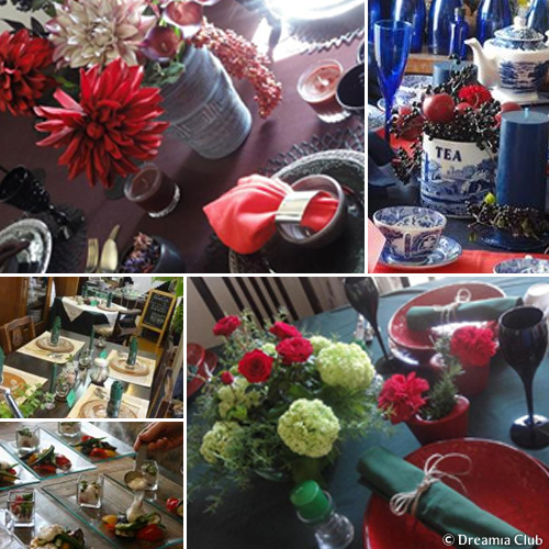 これまでの様々なテーマのコーディネートやお料理。毎回カラーを決め、トータルで提案