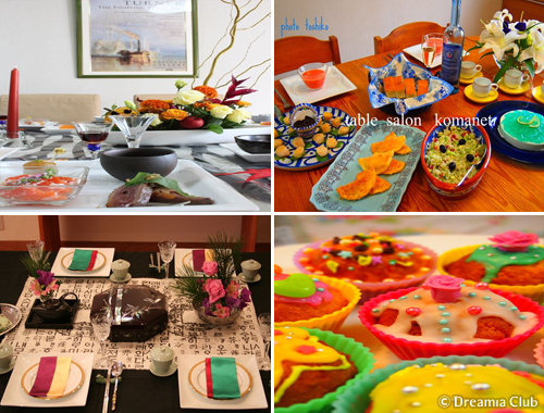 家庭でのおしゃれなお料理、テーブルコーディネート、お菓子、ワイン、紅茶、日本茶、中国茶