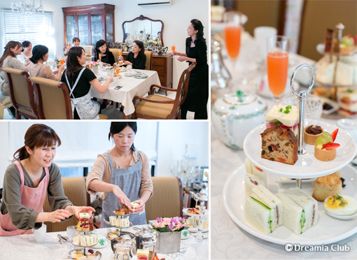 アフタヌーンティーの盛り付けルールを伝え、あとは美味しく見えるようそれぞれのセンスで盛っていかれるとあっと言う間に華やかなテーブルのできあがり。ホテルのアフタヌーンティーのように美しい出来上がりに皆さんのトキメキが伝わります! 全員が着席されると、いよいよお楽しみの試食タイムです。