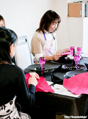 テーブルには今日のレッスンに合わせたシックで華やかなコーディネートがセッティングされていました。