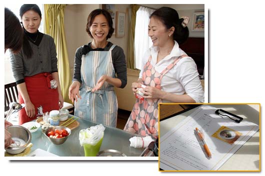 生徒さんはゆったり座って試食し、一番良いタイミングでメインとデザートをいただけるとあって、ちょっとしたレストランでの外食気分も味わえます。