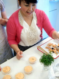 また、生徒さん同士のつながりを配慮する三溝さんのアイディアは他にもあります。例えば、今回のメニューである“サーモンのリエット”は、一晩寝かせると更に旨みが増すレシピ。「前日のレッスンで作ったものを本日の生徒さんが召し上がり、本日作ったものは明日のレッスンの生徒さんに召し上がって頂くのです。まさにお料理のバトンタッチ」こうすることで、実際に会っていない生徒さん同士でもつながりが生まれ、美味しくできるようにチームワークも良くなります。