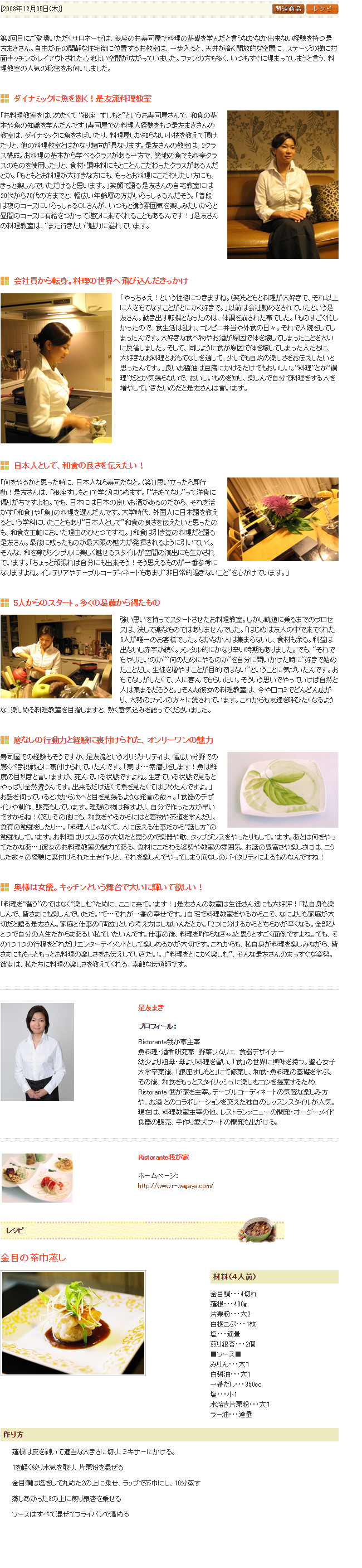 第2回目にご登場いただくサロネーゼは、銀座のお寿司屋で料理の基礎を学んだと言うなかなか出来ない経験を持つ是友まきさん。自由が丘の閑静な住宅街に位置するお教室は、一歩入ると、天井が高く開放的な空間に、ステージの様に対面キッチンがレイアウトされた心地よい空間が広がっていました。ファンの方も多く、いつもすぐに埋まってしまうと言う、料理教室の人気の秘密をお伺いしました。