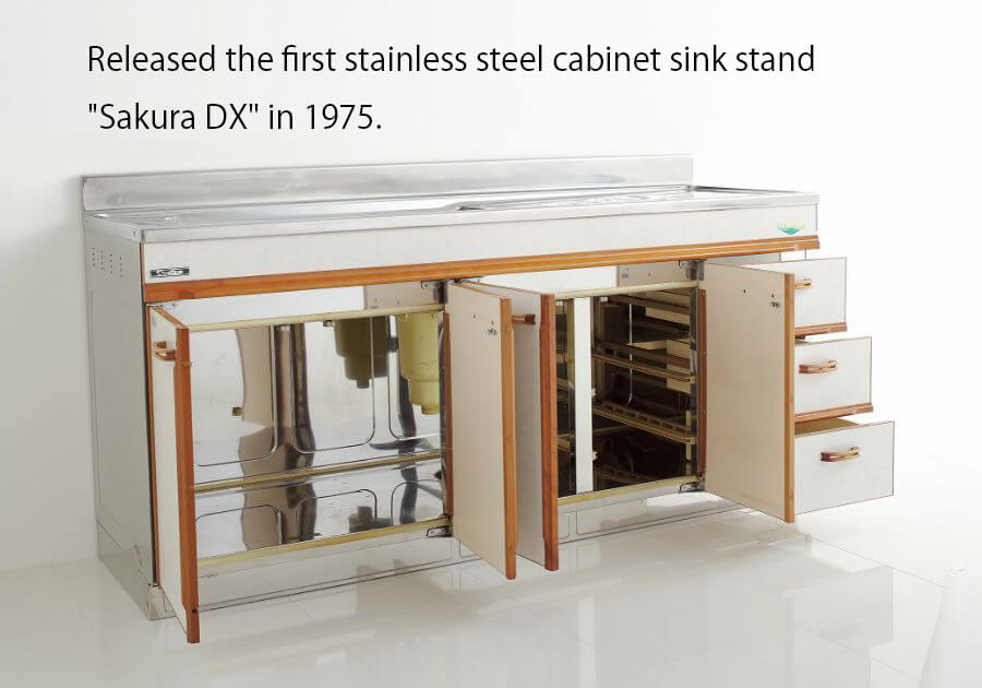 アンティーク調の扉にアーチ状の取手を選びフレンチスタイルに。シンクはブルーグレー色を選び爽やかさも強調。