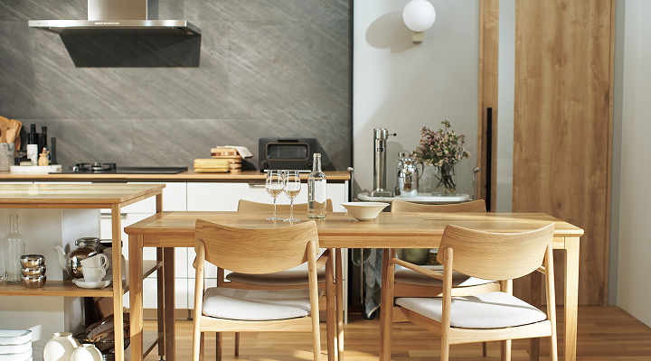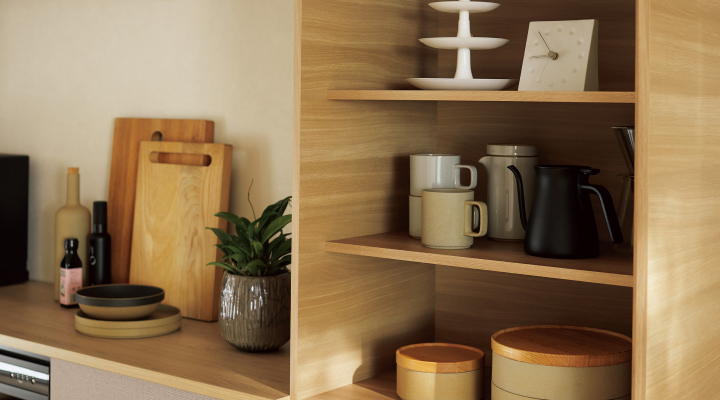 Through the gentle accumulation of everyday moments, something truly precious is quietly handed down. In a kitchen that watches over the family, the warmth born of nature finds its voice in the unique charm that only natural wood can express.