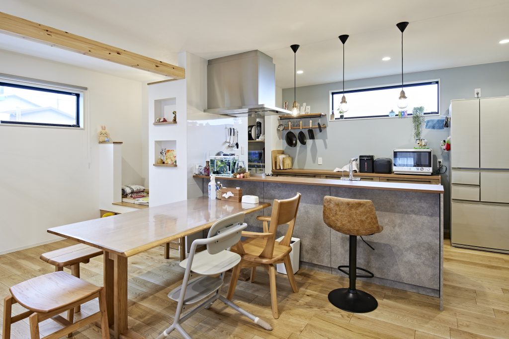 「前の家は狭くて、毎週どこかに出かけないと気が休まらなかった」と振り返る奥さま。今はキッチンやリビングで家族と過ごす時間が心地よく、自然と家にいたいと思うようになったそうです。家づくりを振り返ると、「迷ったら、思い切って良いほうを選ぶこと」が理想の住まいにつながったと話します。