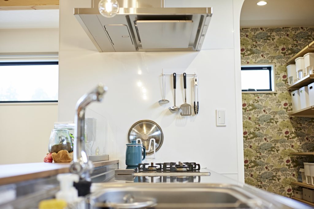 コンロ周りには、料理のバリエーションが広がる“火力”を重視して、「ガラストップコンロLiSSe(リッセ)」を選択。また、油を使った料理も気兼ねなくできるよう、レンジフードは「洗エールレンジフード」を採用しました。