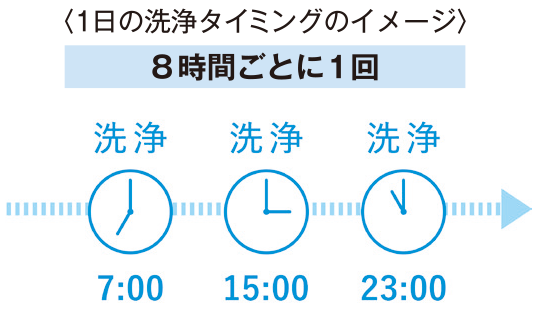 1日に行われる洗浄回数は、検証を重ねる中で割り出したヌメリを抑制できるインターバルと水の使用量を天秤にかけて、1日3回が妥当という結論。自動だったらお客様自身での操作は必要なく、勝手に洗浄が始まるので、操作の負担がなくなります。