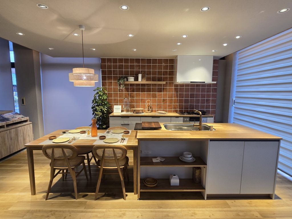 天然木ワークトップを搭載し2列型レイアウトのSTEDIAによる空間提案コーナー